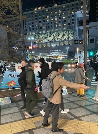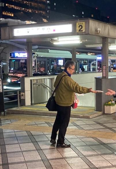 京都駅前は相変わらず外国人観光客が多かったですが、受け取った人の中にはビラの中身を興味深く見てくれている方もいました。
