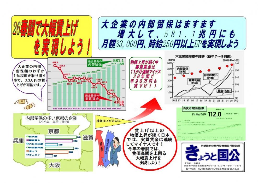 京都国公の26春闘方針(案)について、矢野事務局長からは、
